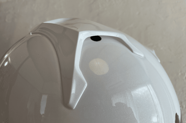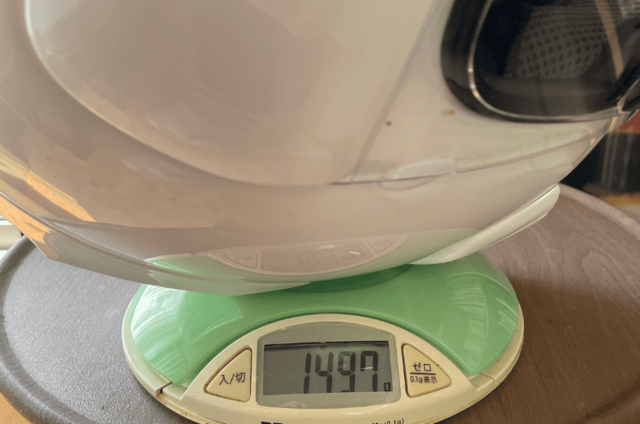 今回測定したヘルメット【白:57-58サイズ(Mサイズ相当)】では、実測で1497g、【黒:55-56サイズ(Sサイズ相当)】、実測で1447gという結果に。フルフェイスヘルメットとして見ると、明らかに軽量寄りの数値であり、持った瞬間に「軽い」と感じられるレベルに仕上がっています。
