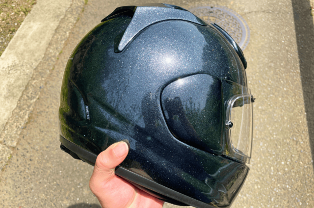 これにより、走行時のライダー頭部への風圧を劇的に軽減させています。