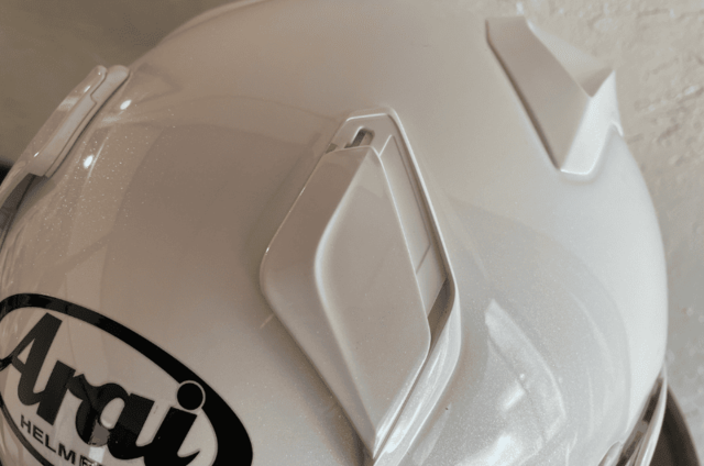 大型のリヤベンチレーションのシャッターはあえて搭載せず、ヘルメットの空力を優先させる設計。