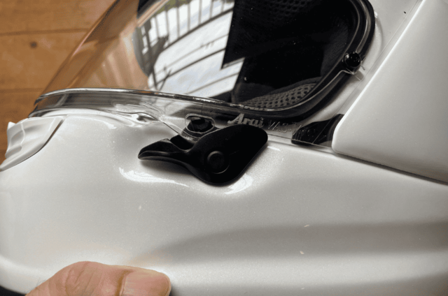 シールド内側の曇りを防ぐデミスト機能も備え、大型ロックになりグローブを着用しての操作もし易くなっています。